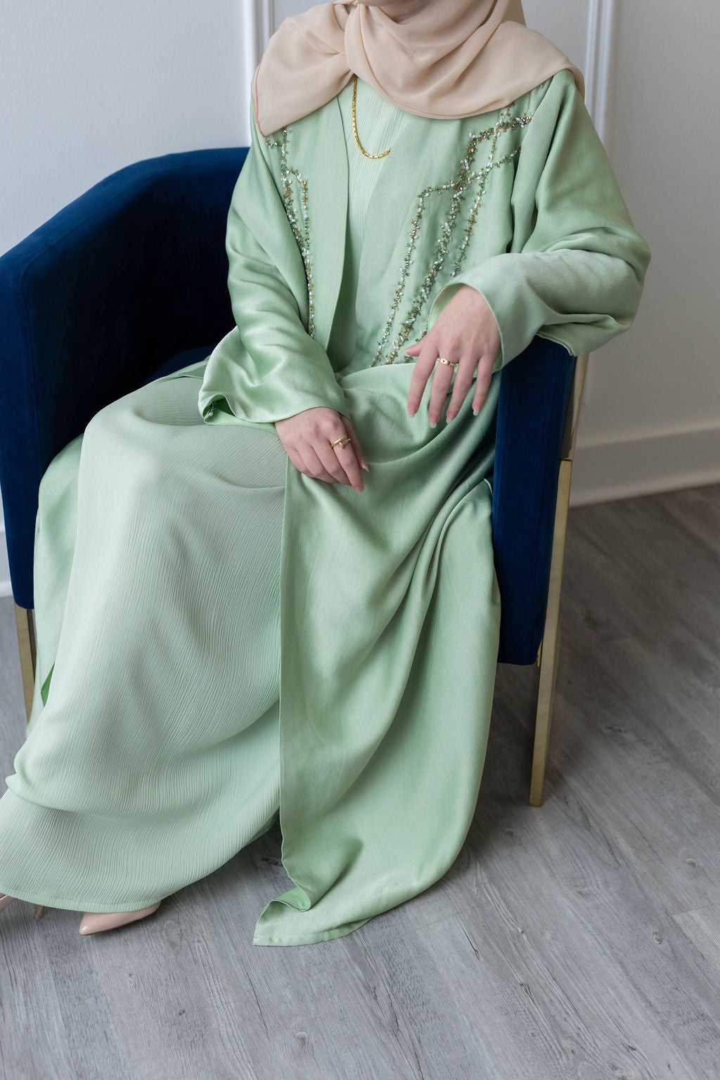 This luxurious 2 - Piece Set is the perfect abaya for you if you're looking for something to wear for your next event.