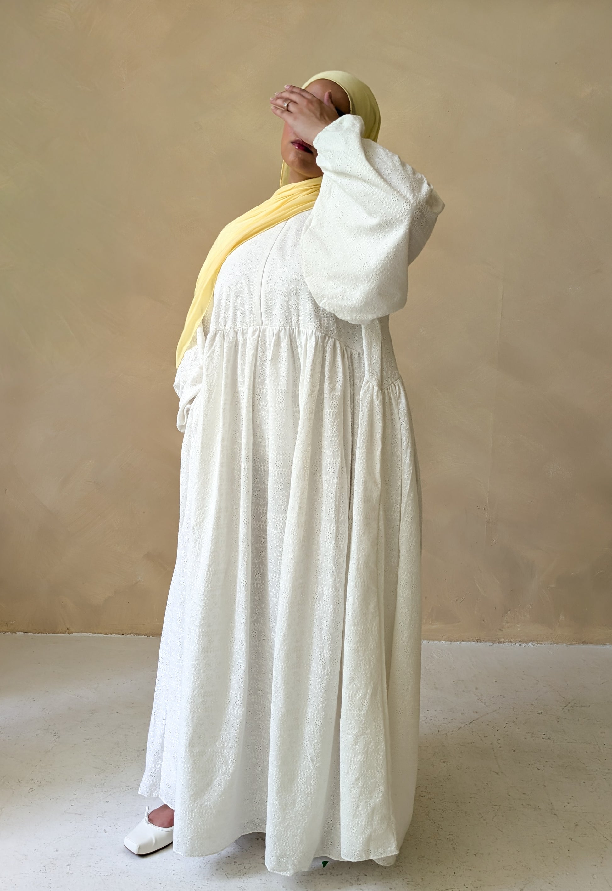 The White Meadows Abaya is where simplicity meets elegance. Made from 100% breathable cotton, this abaya is designed with mothers in mind—featuring discreet nursing-friendly openings for effortless convenience while maintaining complete modesty.